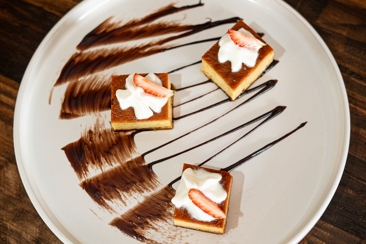 Delicios Cheescakes, preparado por el chef con finos quesos.