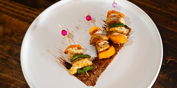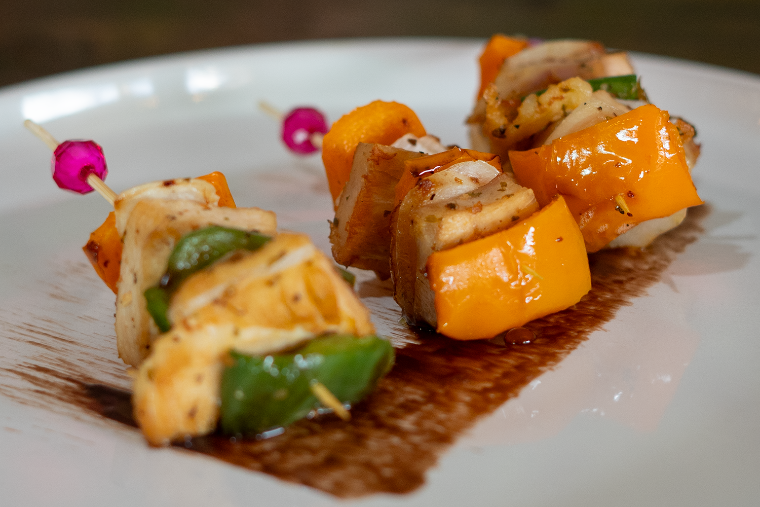 Deliciosos pinchos de pechuga de pollo fresco, con chile y cebolla frescas.